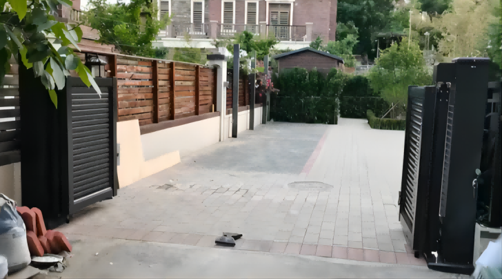 庭院大門廠家:直線無軌平移門現代出入口的簡約科技解決方案
